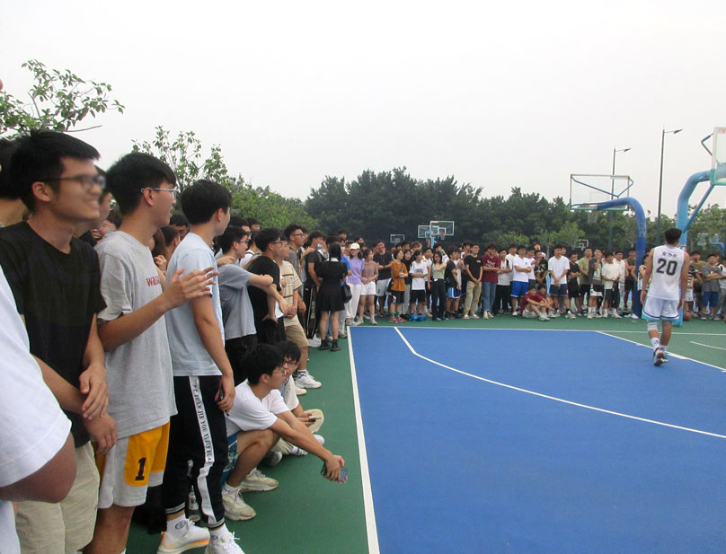 综合来看,四场四分之一决赛,除了今天土木和材能这场,另外三场比分差都在15分多左右,实力差距还是比较明显的,实际情况也反映出来,今天这场土木和材能的对决,现场引来了相当多球迷和各自粉丝围观,现场气氛热烈亢奋,客观上这两队都实力不俗且算接近,两队都有不少是校队的可称得上“明星级”的球员,像土木场上的周富恒、安沙尔等就是过去几年校队的主力,周富恒更是人气非常高的(听说人气不低),可惜今天最后时刻,能抢投博到三分犯规(先不说这个犯规是否算牵强),已算实属不易,当时他的庆祝造三分犯规成功的手势动作,看着应该是挺有信心后面起码罚进个两分打平甚至三罚全中绝杀带走比赛的,实际情况是,我们都看到了,三个罚篮一个都没进(最后一个想故意罚不进抢板补二分能理解,但居然框和板都没打碰到,只是刷了一下篮网出了底线,球权给回到材能手上,时间所剩几秒不超过5秒,结果可想而知,此时,材能算是更淡定了,一个快发还抢成了,再锦上添花拿个两分,最终比分定格61比57),可能是现场围观的气氛真的是太亢奋了,场上球员都不可避免完全不受影响或干扰,按说周富恒这样一个水准的球员,罚球命中率上也不能说低的