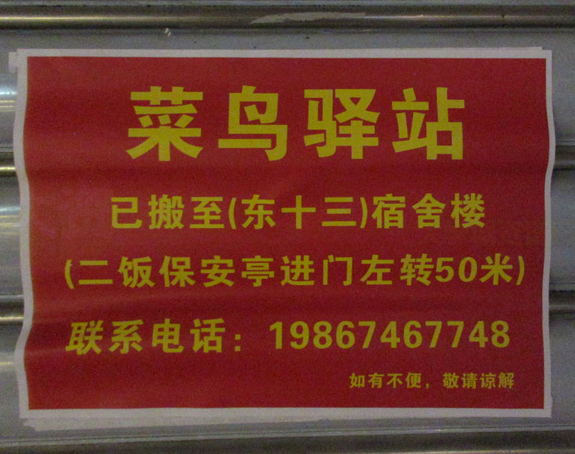 | 东区商业楼一楼东北部的邮政&菜鸟驿站,在上月底前已经搬到女生宿舍楼东十三栋一楼架空层西北角 | ||||||