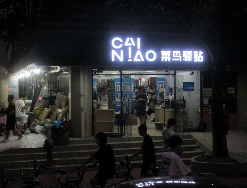 这里这个位置空间看着似乎也还没原来东区商业楼的大呢,不过可能就是学生进出取件/寄递更方便了。换搬到这个位置,是不是有点考虑到西区西六楼下的同样是一个菜鸟驿站因为装修没开了,而让在这里尽量接近靠近西区而起到能综合兼顾西区之作用?不过就算是这样,西区学生要出来再过来这边,也还是有些绕远的;又或者这里离东区的主要路边快递柜排甚至是西区的也都更近,那样货物包裹方便投放到快递柜兼及西区的那一长排,也可算间接尽量便利顾及西区学生取件或寄递了,因为目前这样看广工东西区综合实际就是一个菜鸟驿站在运转,所以位置尽量取两者居中兼顾平衡