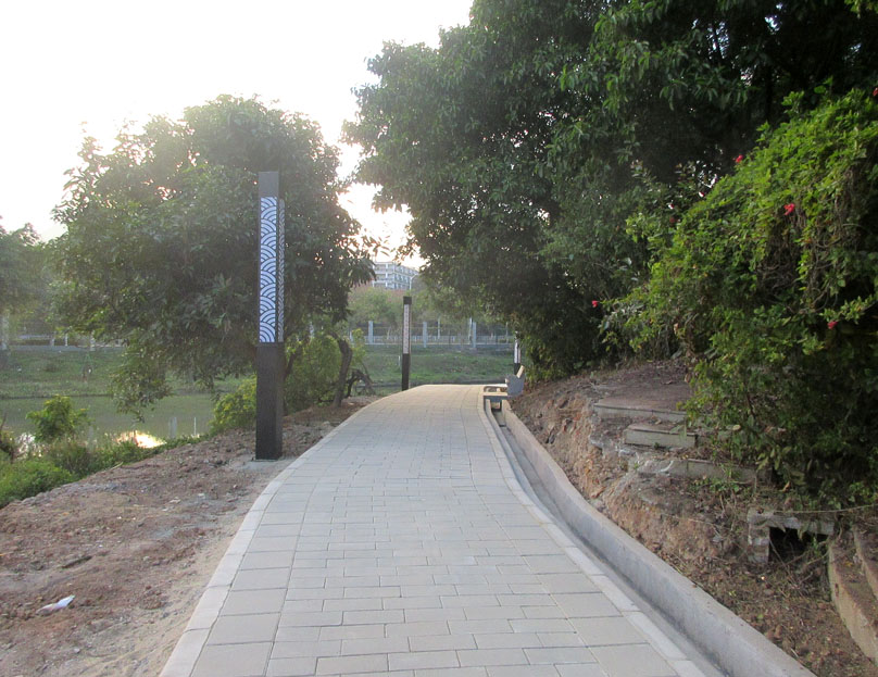 | 广工西区西湖涌&西山沿湖边新修建的步道已经基本完工 晚上也看到新装的路灯开亮 感觉效率还蛮快的,是不是用时好像才两周多时间吧 | ||||||