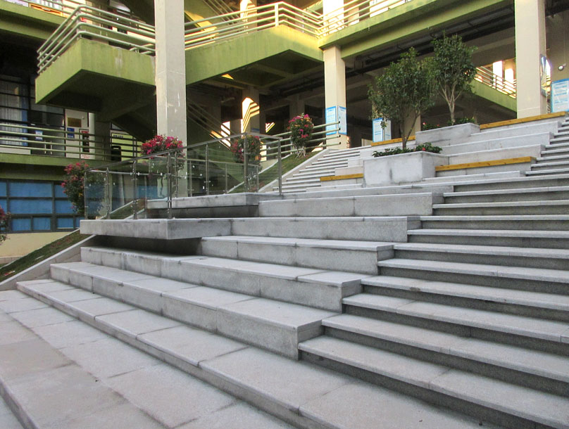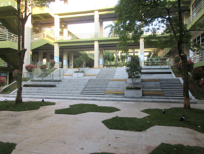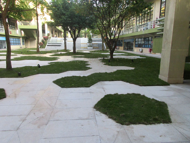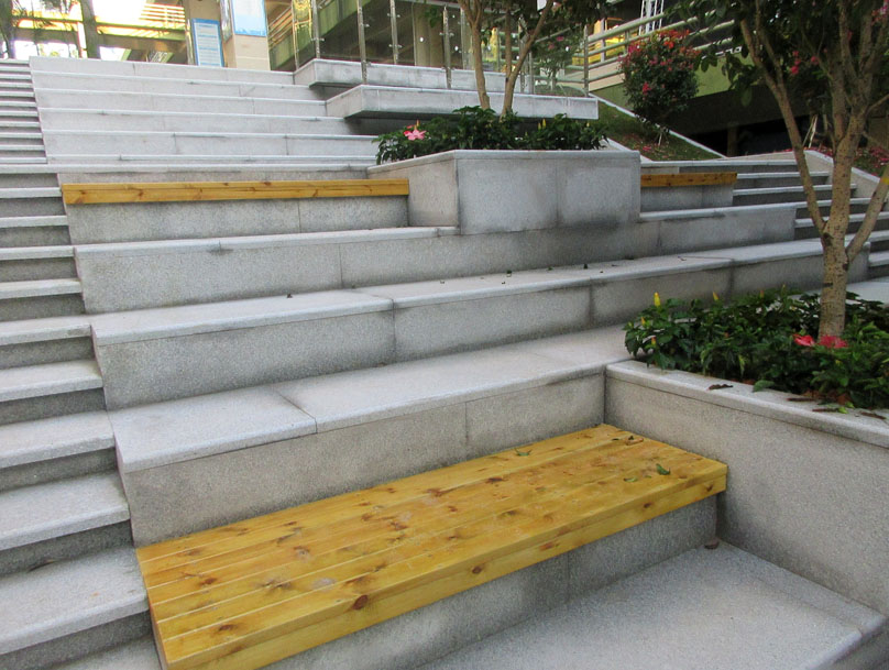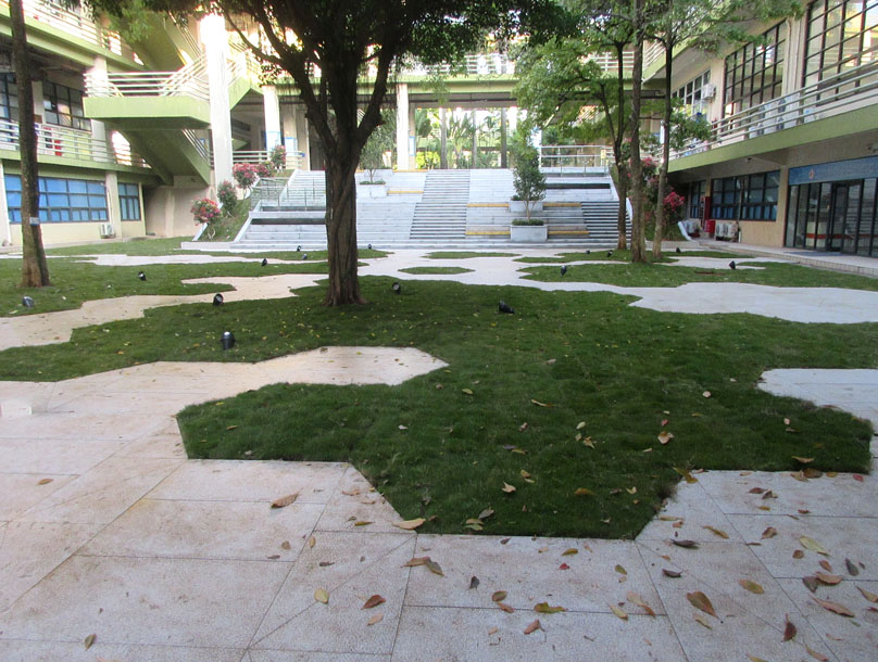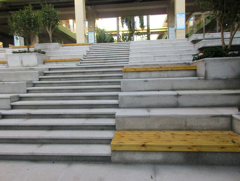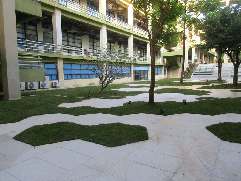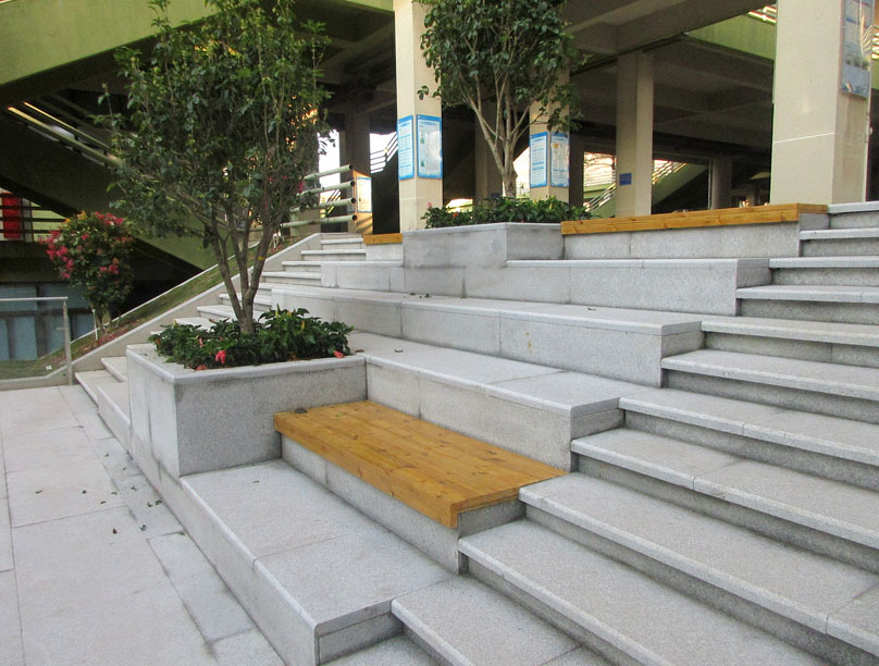 中间庭院东侧台阶对上绿带也进行了类似改造优化
