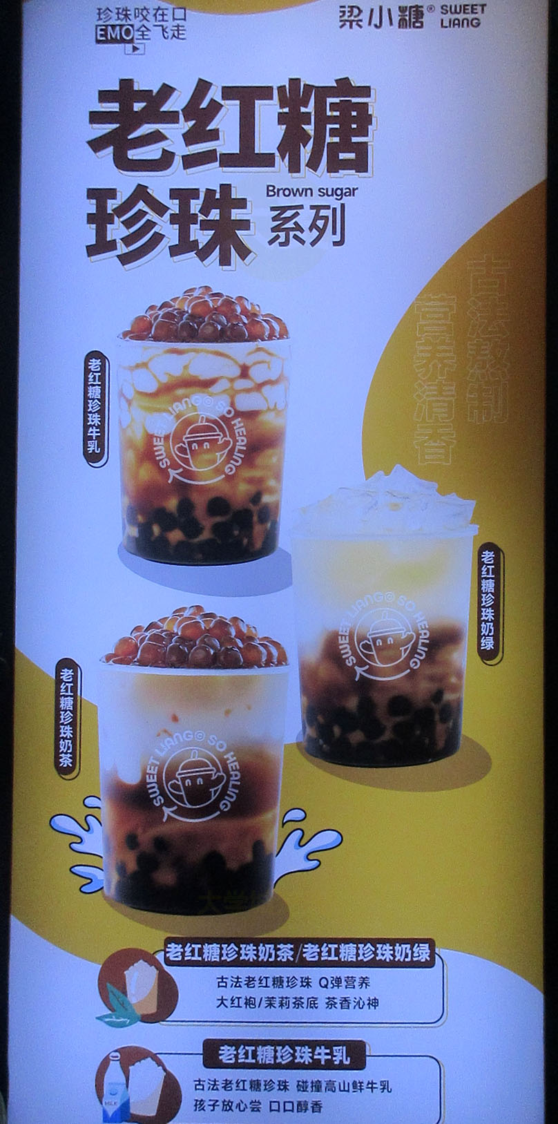 新天地正门广场东 原始烤肉店门外侧 梁小糖奶茶店 老红糖珍珠系列推荐:老红糖珍珠牛乳、老红糖珍珠奶茶、老红糖珍珠奶绿