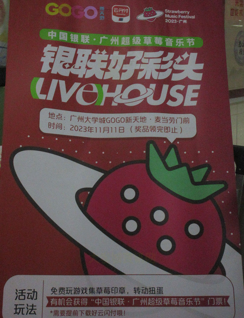 | 活动预告-中国银联·广州超级草莓音乐节 2023.11.11 广州大学城新天地正门西广场 | ||||||