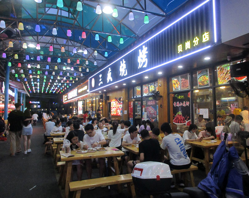 今天端午节放假又也是周末 新天地东街内段傍晚7点左右就已经吃客爆满了,主要几家大的烧烤啤酒小龙虾大排档的通常一般就算周末也是在晚上近9点多过后才会显得多人