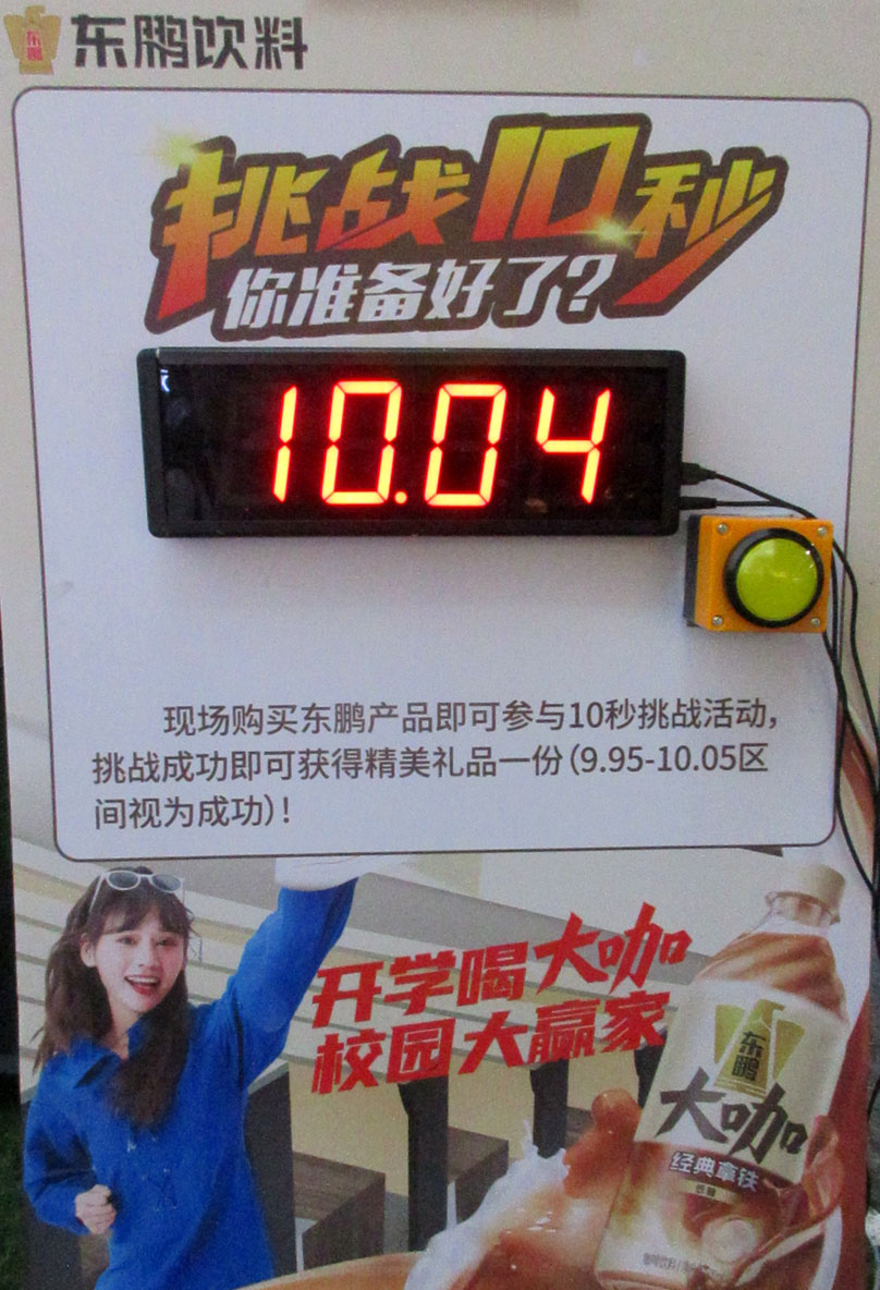 | 东鹏特饮宣传推广活动 新天地正门 扫码支付1毛钱即可买东鹏产品1支 同时组合购买还可送收纳盒一个 以及其它挑战送礼品 | ||||||