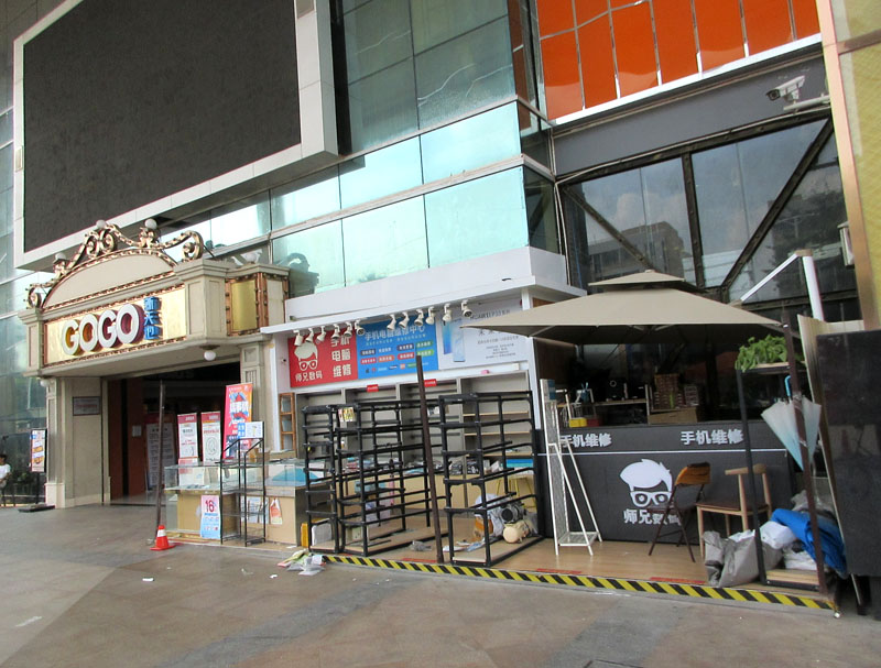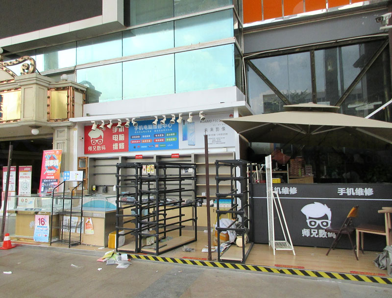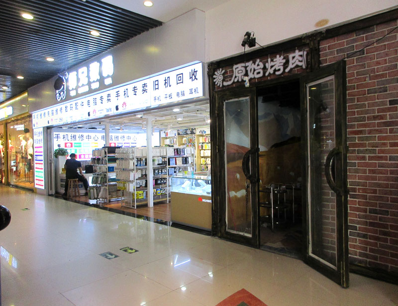 新天地正门侧师兄数码内进到扶梯东侧,原始烤肉原空间西北角,之前城管就不让在门口开的,后来拆了棚挡遮盖,又继续经营,这次看样子,是要恢复这个位置,不再开店了;看到它们新装好,也基本铺好货架的店面,感觉,在里面这里,也挺好的吗,还不用风吹日晒天气热和刮风下雨没法挡,内面商场又有空调供应