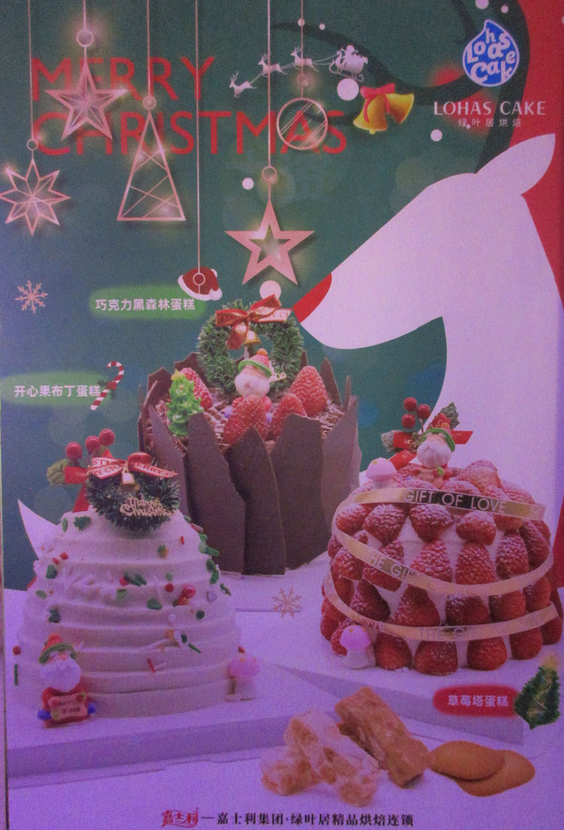 | 新天地二期一楼西廊道南 绿叶居面包店 圣诞节系列蛋糕推荐 巧克力黑森林蛋糕、开心果布丁蛋糕、草莓塔蛋糕 | ||||||