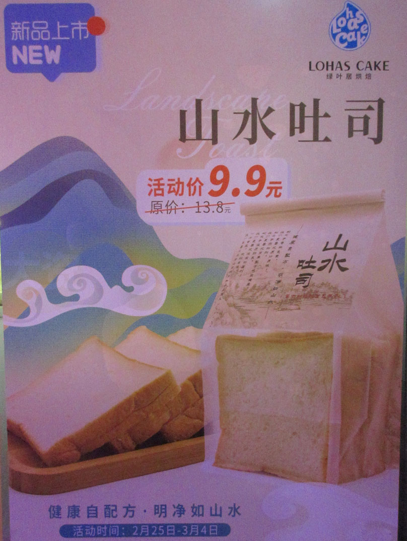 | 新天地二期一楼西南门 绿叶居 新品上市 山水吐司原价13.8元活动价9.9元 2月25-3月4号 五谷杂粮-大自然的馈赠 | ||||||