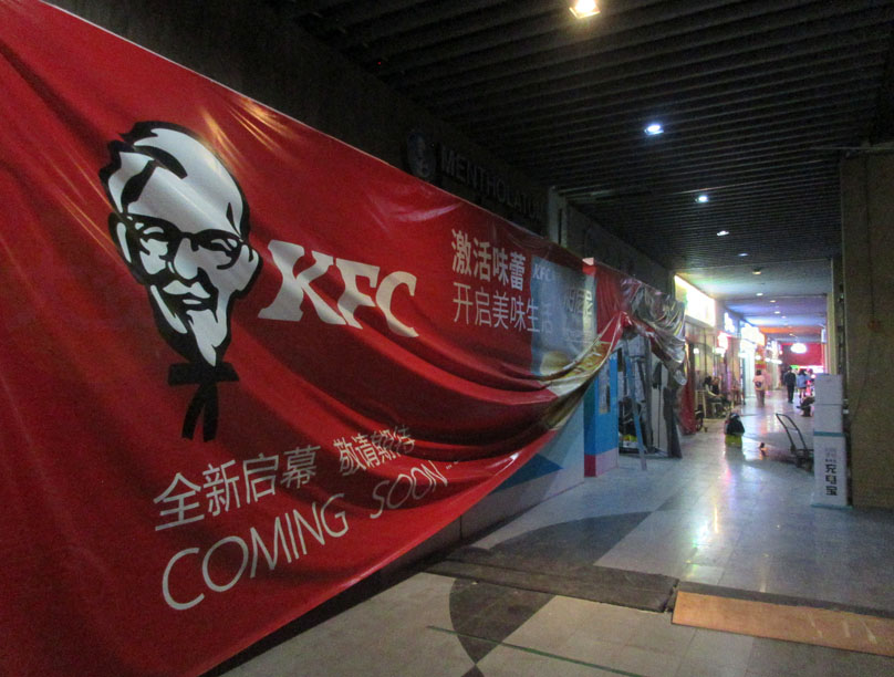 新天地二期一楼外西廊道中 KFC肯德基装修已进入实地施工阶段 据说最快1个月多左右可呈现