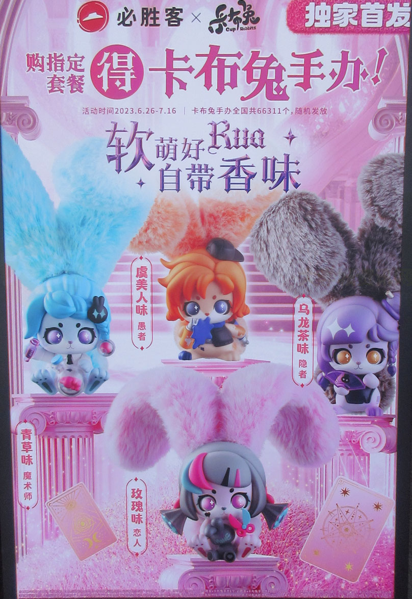 新天地二期西北角一二楼 必胜客欢乐餐厅 购指定套餐得卡布兔手办 软萌好Rua自带香味 活动时间2023.6.26-7.16 全国共66311个,随机发放 四种味道