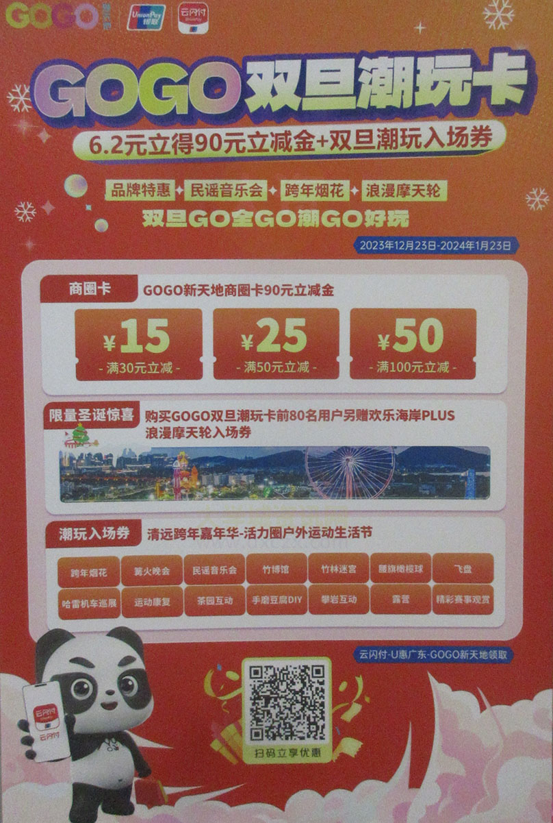银联&新天地 GOGO双旦潮玩卡 6.2元立得90元立减金+双旦潮玩入场券 2023.12.23-2024.01.23 |