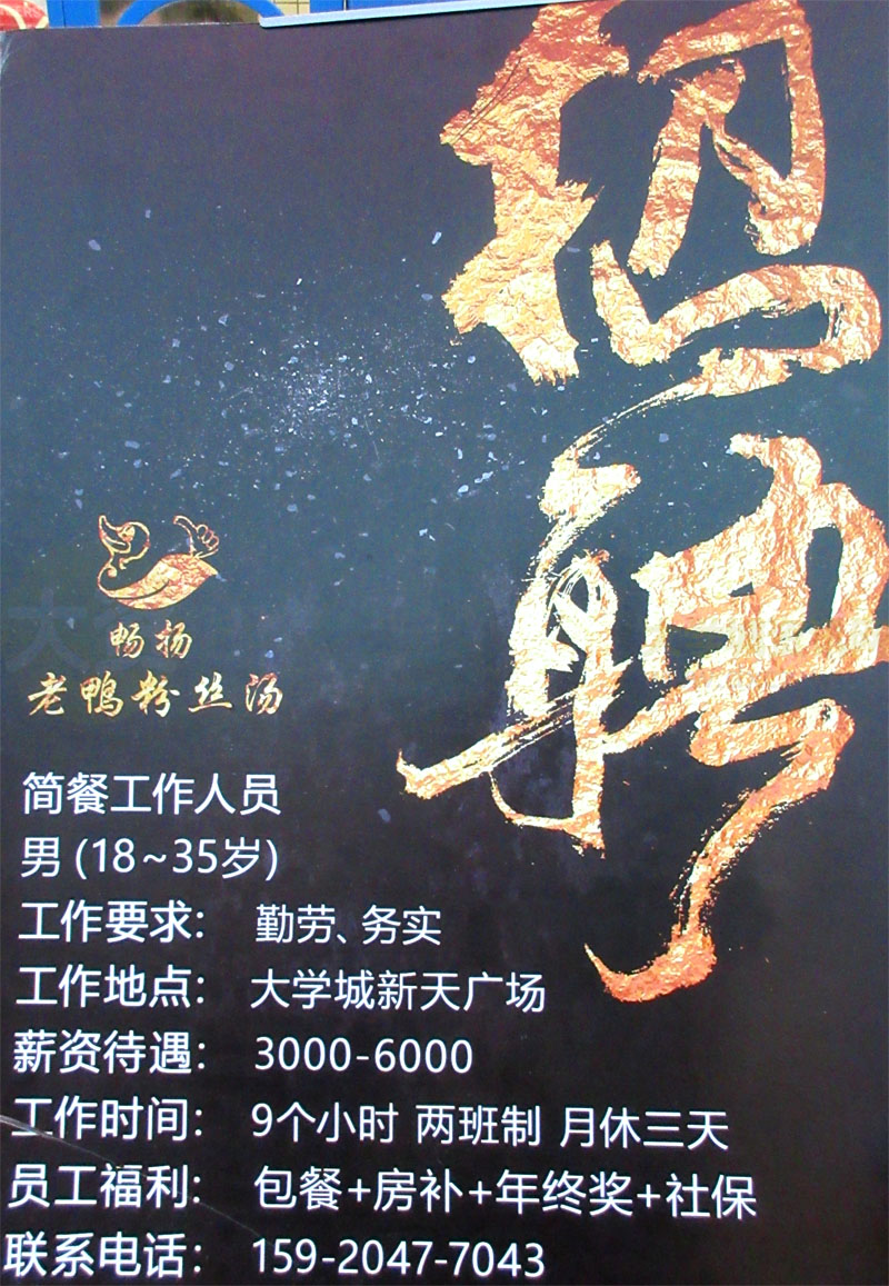 | 畅扬?老鸭粉丝汤-新天地西街南位约 招聘 简餐工作人员 | ||||||