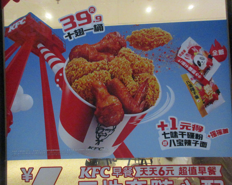 新天地二期西外列中 肯德基 翅桶摇摇乐园营业中 39.9元十翅一桶 +1元得七味干碟粉+摇摇盖或八宝辣子面 活动时间2023年6月2日-6月25日