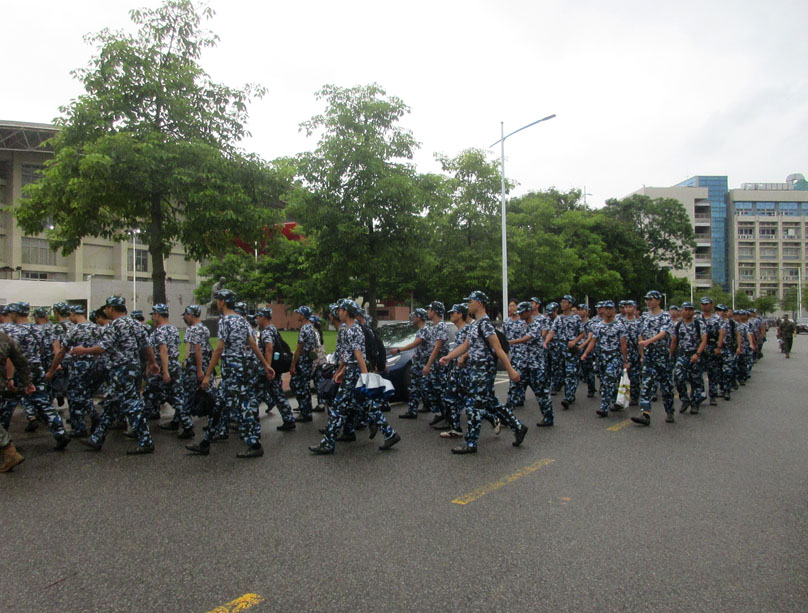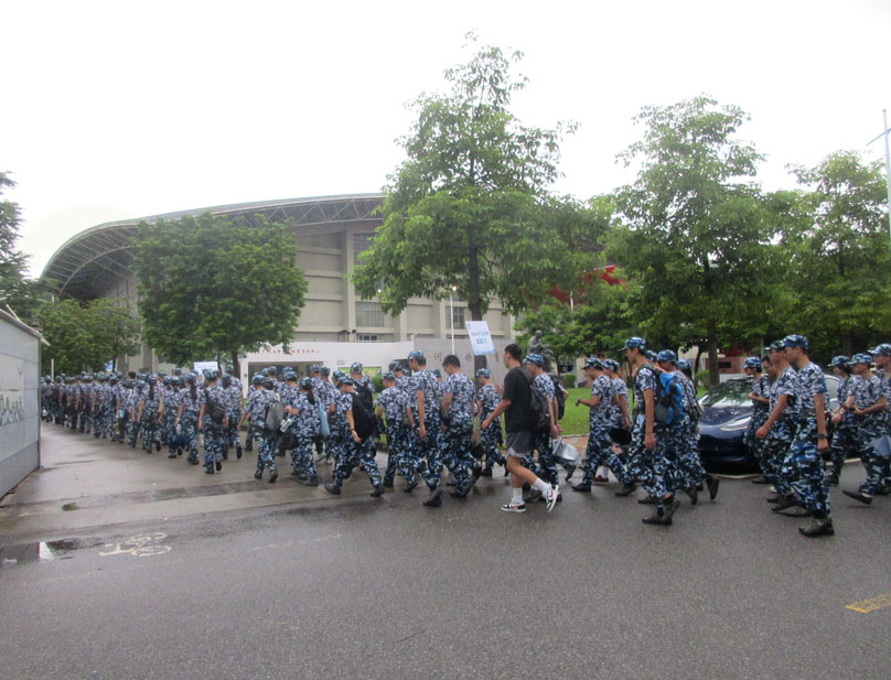 广大新生军训 难得上午天气有所转晴 午后雨水又蠢蠢欲动来光顾