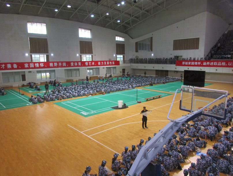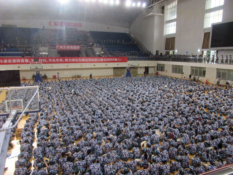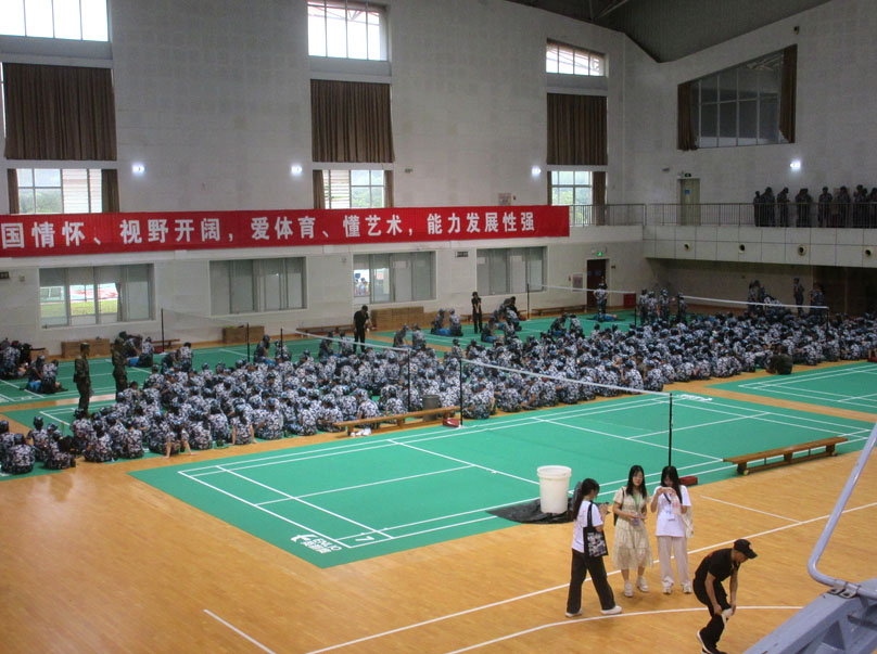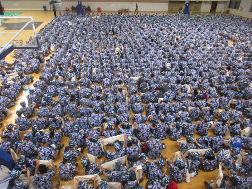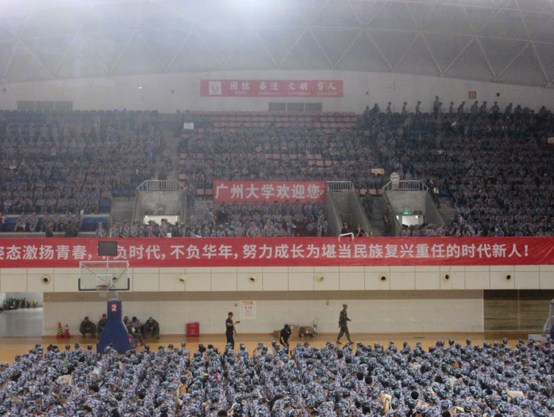 广大新生军训 难得上午天气有所转晴 午后雨水又蠢蠢欲动来光顾 前两天的持续降雨,基本是免训休息 今天下午不知是临时安排的还是既定的在体育馆进行 说是心肺复苏&急救&受伤应急处理等演示实训 似乎新生开学季,天气并不是那么友好啊,好像是跟军训杠上了似的,一连下了好几天雨
