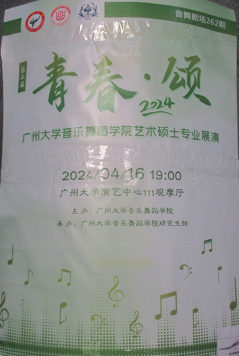 广大教学区东-演艺中心内111观摩厅 今晚19点有音舞学院艺术硕士专业展演将进行