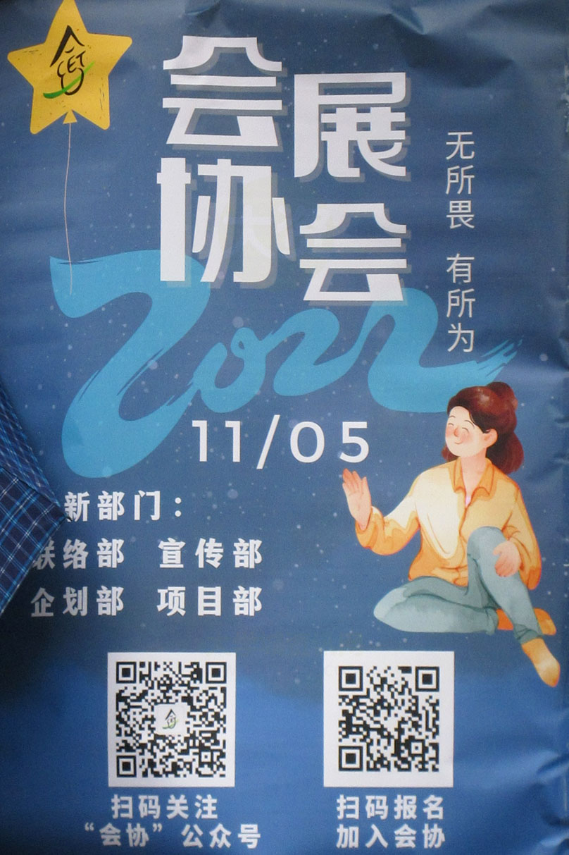 广大2022百团招新 摊位现场之网球协会&会展协会 具体位置兰苑1栋南侧辅道东数第二第三摊位