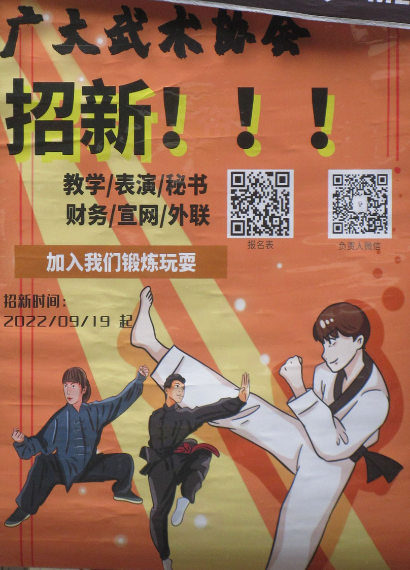 | 广大2022百团招新 摊位现场之武术协会&学生法律咨询服务社 具体位置兰苑2栋南侧辅道东端 | ||||||