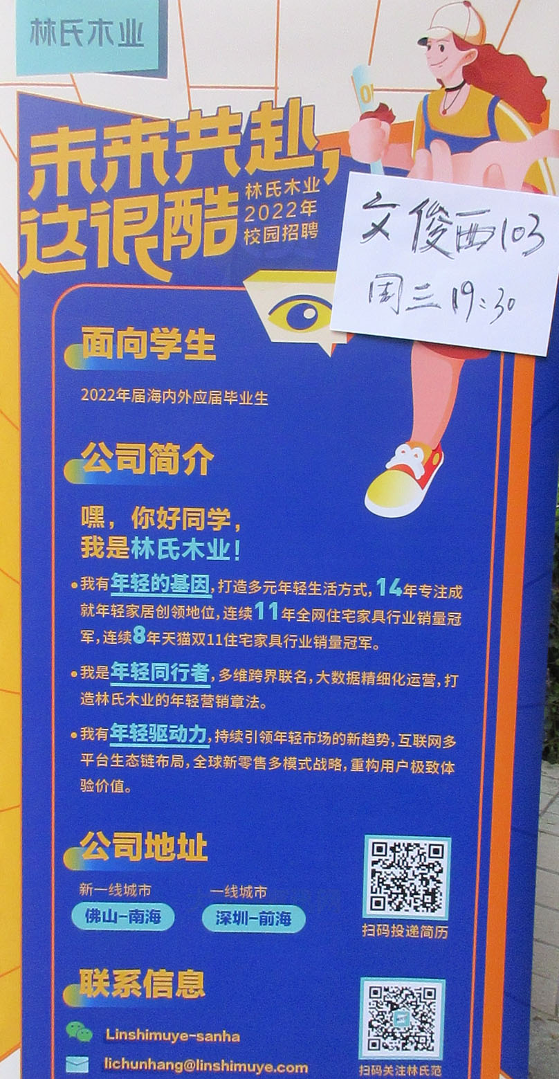 广大 林氏木业2022校园招聘 文俊西103 2022.04.06周三19点30分