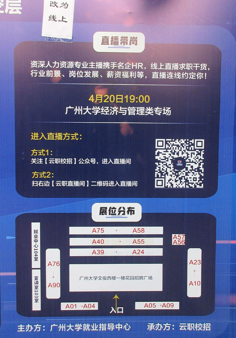 广州大学2022届综合类线下招聘会4月12日14点-17点文俊西楼架空层-改为线上进行