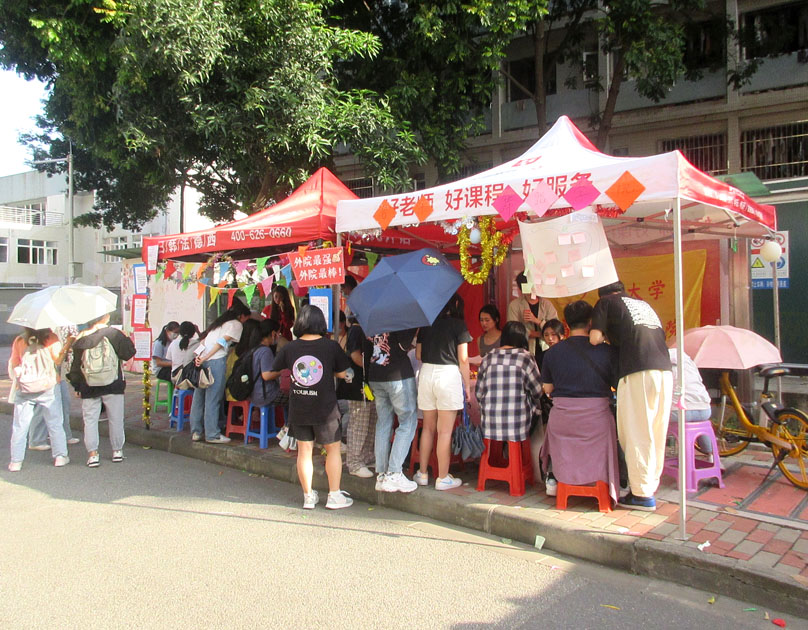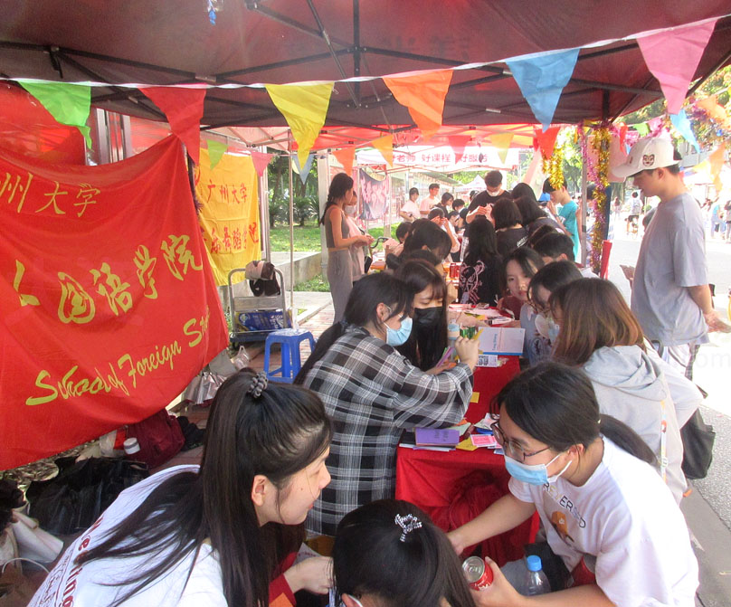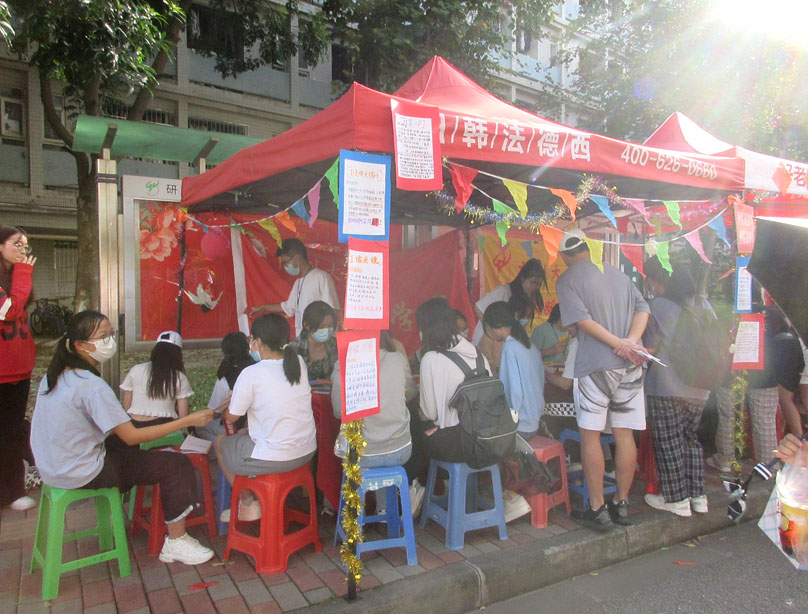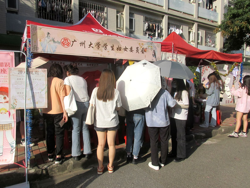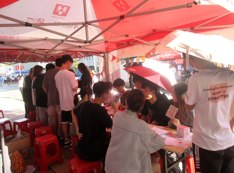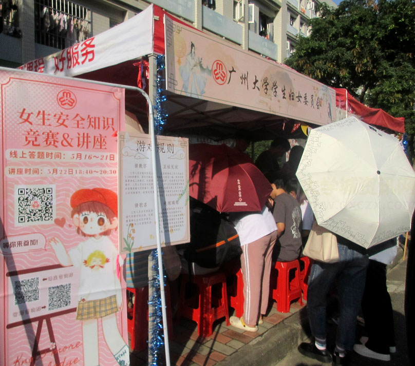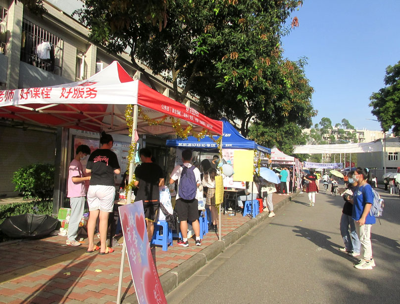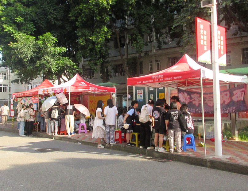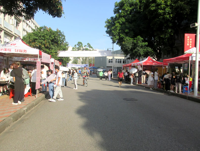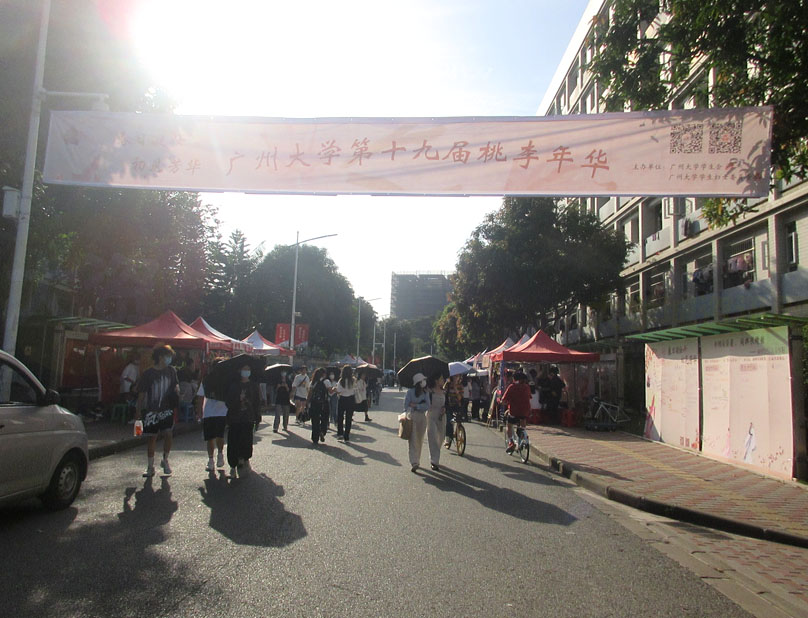 | 今天的生活区红棉路中段还是非常热闹的,有个广大已经是第十九届的桃李年华活动 很多学院都有出摊参与 | ||||||