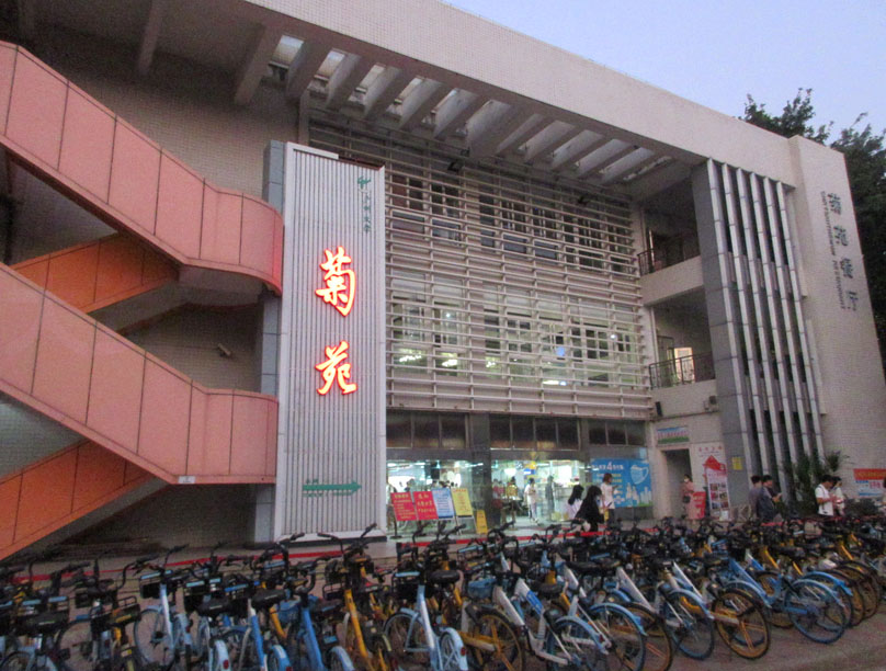 | 广大生活区菊苑餐厅饭堂楼前面之前的粤园两个字 现在看到已经换成了菊苑 | ||||||