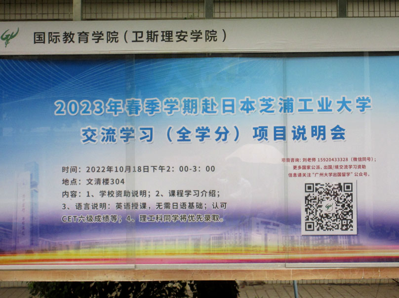 | 2023春季学期赴日本芝浦工业大学交流学习(全学分)项目说明会 2022.10.18下午2点-3点 文清楼304 | ||||||
