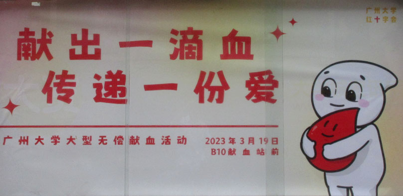 | 广州大学大型无偿献血活动 2023.03.19周日 生活区梅苑B10栋献血站前 | ||||||