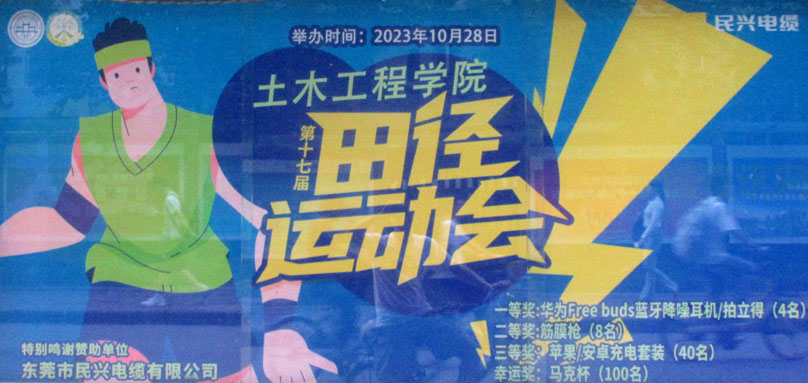 | 广州大学 土木工程学院 第十七届田径运动会 2023.10月28号周六上下午 似乎还有奖品 同时还拉了赞助 | ||||||