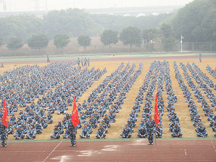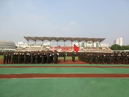 广中医2022级学生军训阅兵今上午在教学区运动场进行