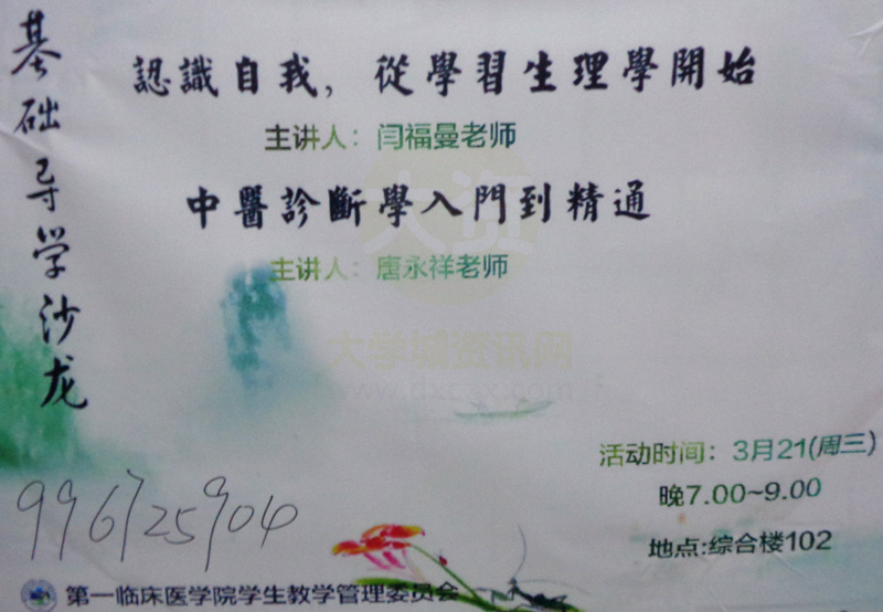 | 生理学&中医诊断学讲座预告 3月21日(周三)晚7点到9点 综合楼102 | ||||||