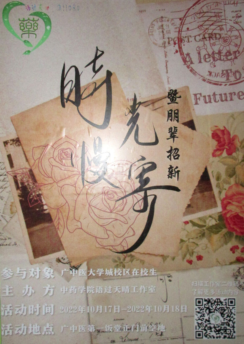 时光慢步暨朋辈招新 2022.10.17-2022.10.18 一饭正门前空地 语过天晴工作室 |
