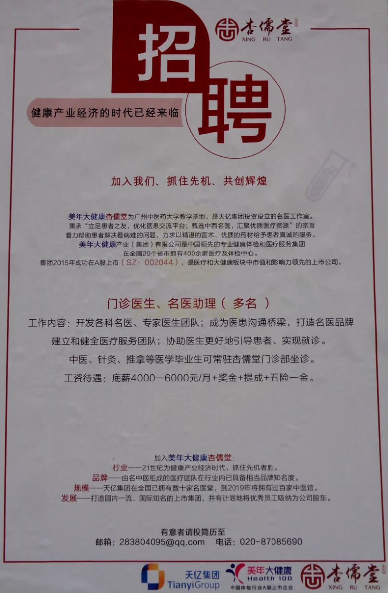 | 天亿集团名医工作室杏儒堂招聘 | ||||||