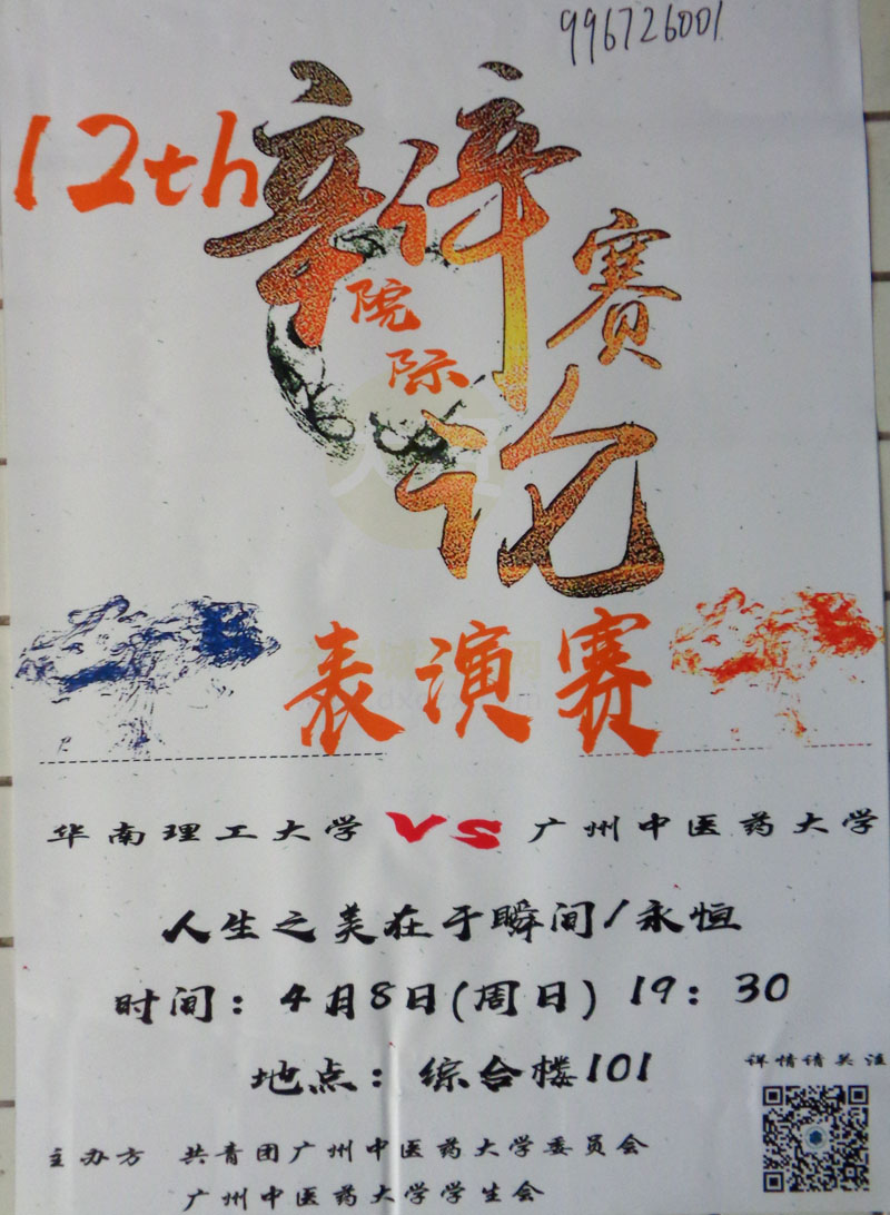 | 12th院际辩论赛表演赛(华南理工大学VS广州中医药大学)4月8日19:30综合楼101 | ||||||