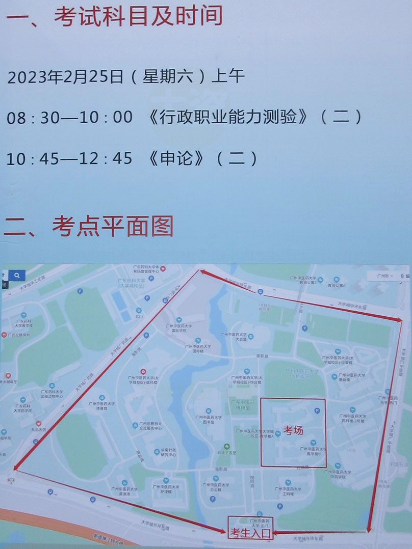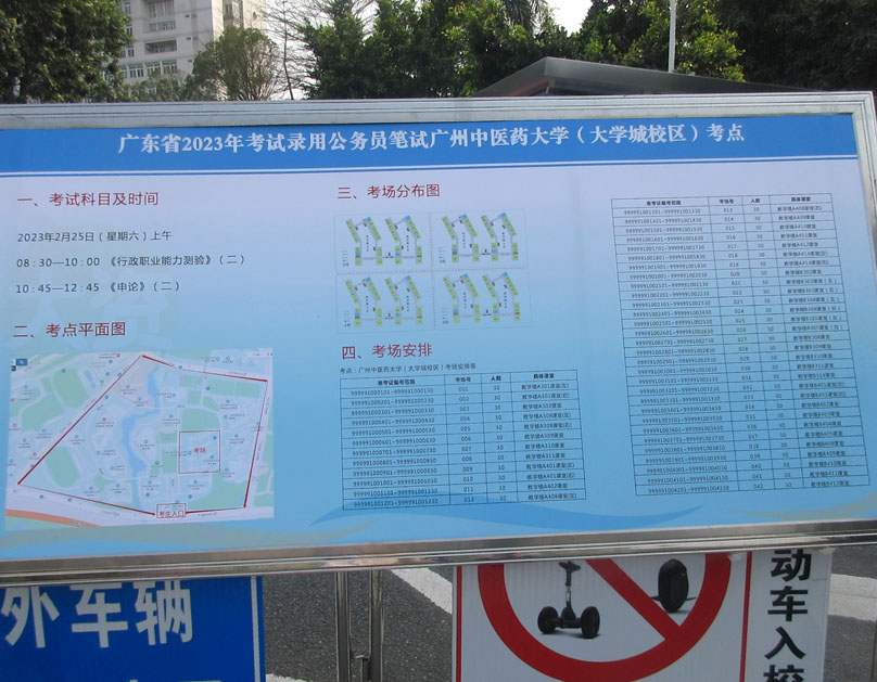 大学城广中医明天上中午将作为考场进行广东省2023年公务员录用考试 附具体考试科目时间、考场分布示意图及具体试室编号安排