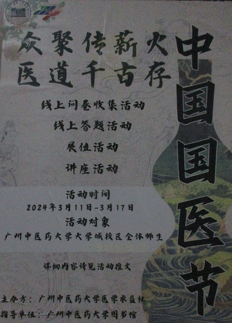 | 广中医-中国国医节 线上问卷&答题 线下展位&讲座 面向大学城广中医全体师生 2024.03.11-03.17 | ||||||