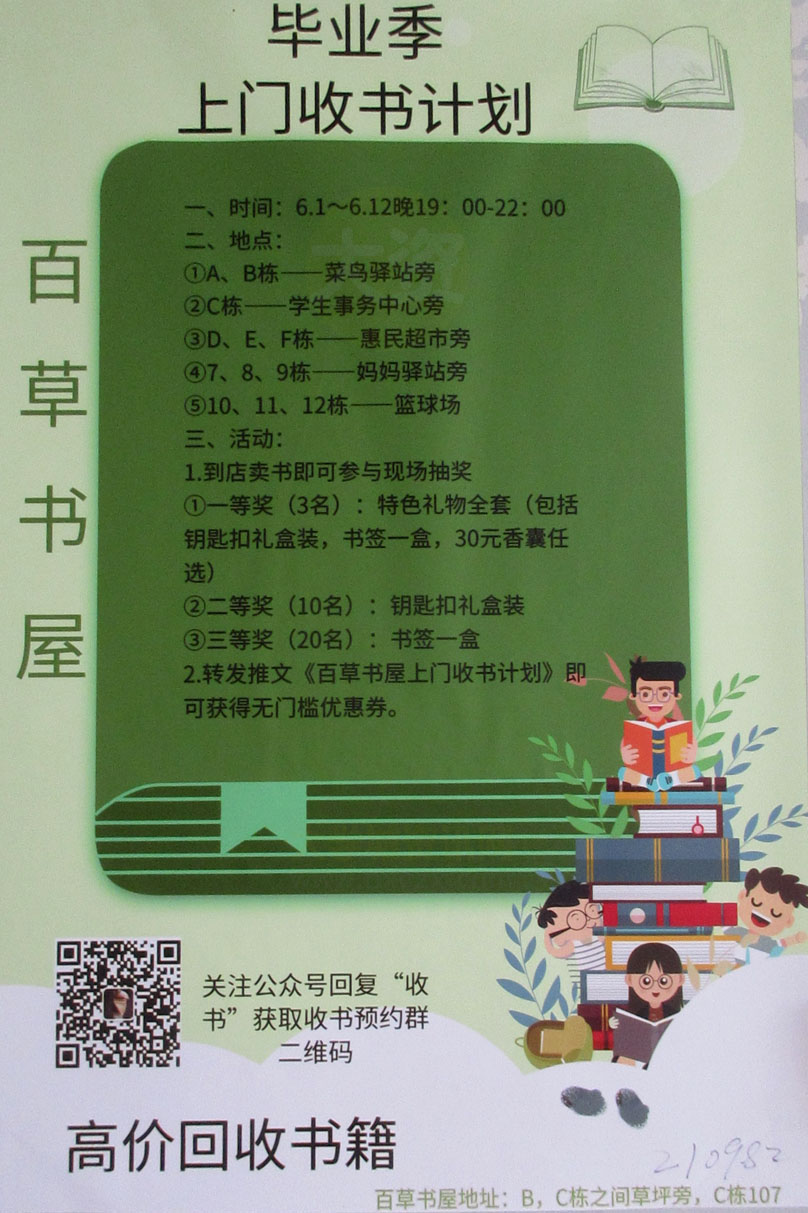 百草书屋 毕业季上门收书活动 时间6.1-6.12晚上19点-22点 |