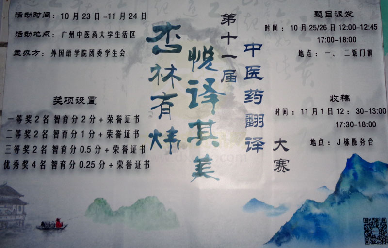 | 第十一届中医药翻译大赛 题目派发10月25/26日 一、二饭门前 | ||||||