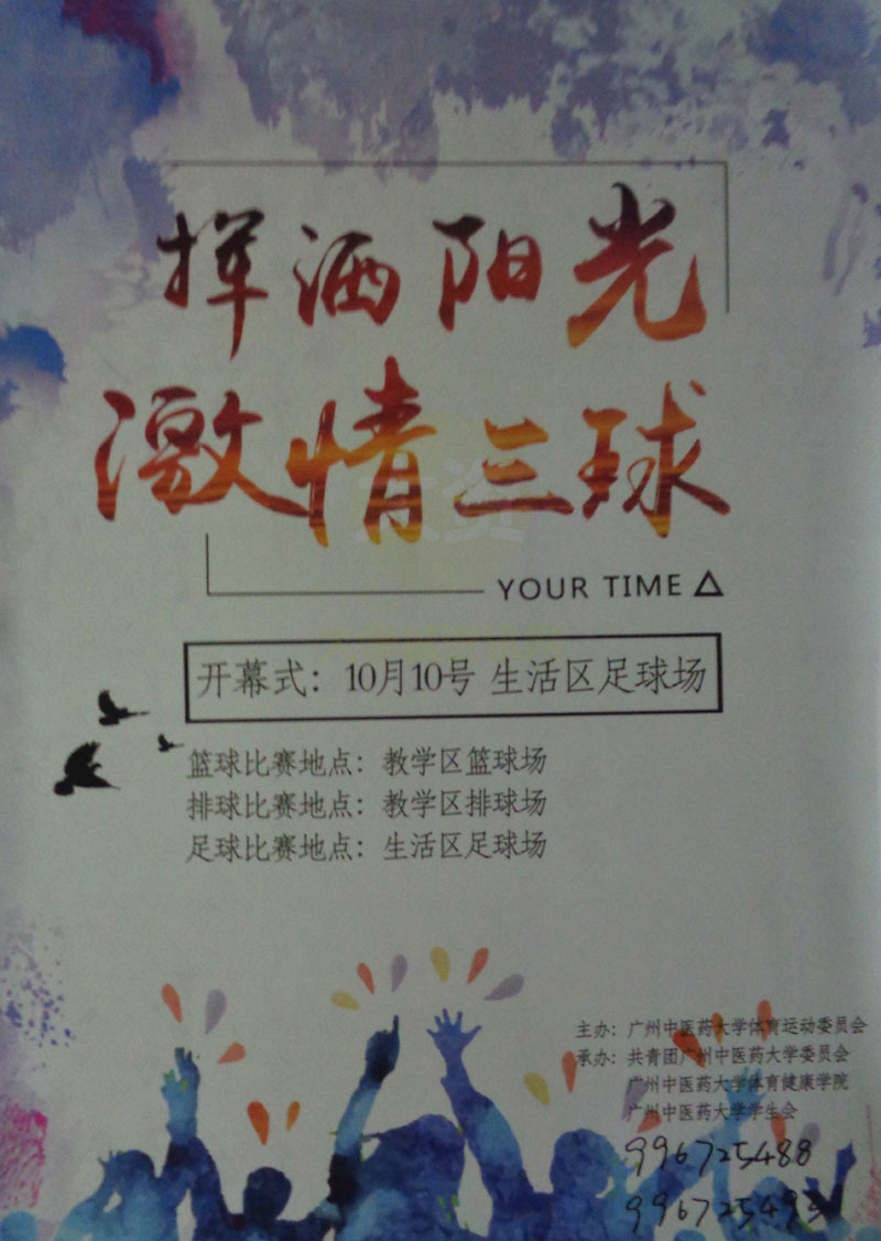 | 挥洒阳光激情三球开幕式10月10号生活区足球场 | ||||||
