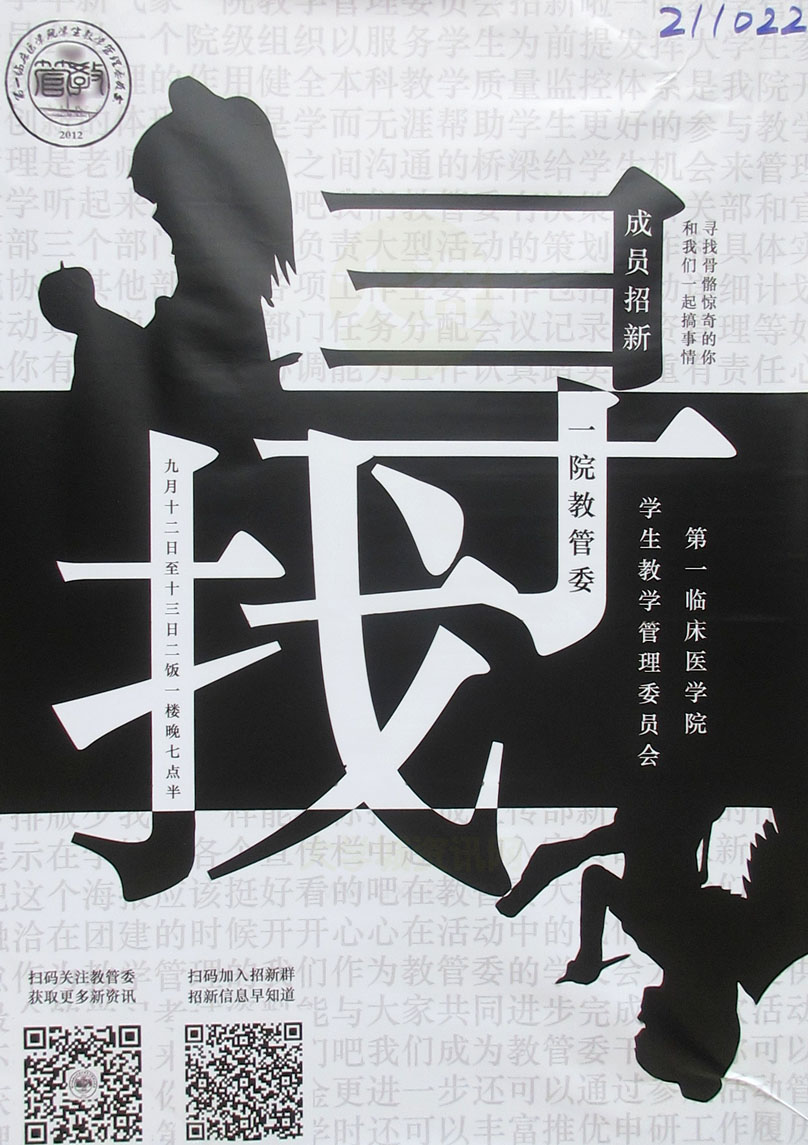 | 第一临床医学院学生教学管理委员会成员招新 9月12-13日二饭一楼晚7点半 | ||||||