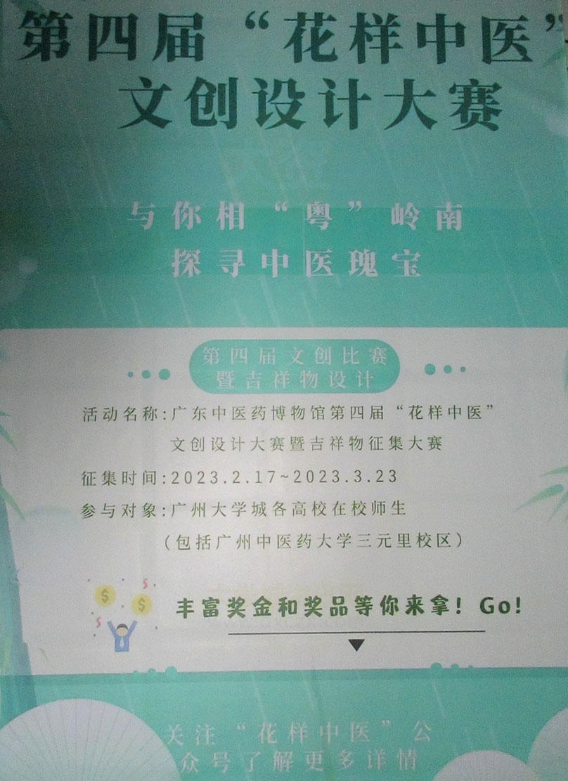 | 第四届花样中医文创比赛暨吉祥物设计大赛 2023.02.17-03.23 面向全校师生 奖金奖品丰厚 | ||||||