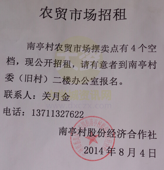 | 南亭农贸市场(4个空档)招租公告 | ||||||