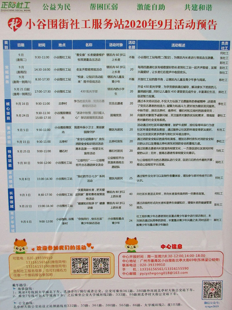 | 小谷围街社工服务站2020年9月活动预告 | ||||||