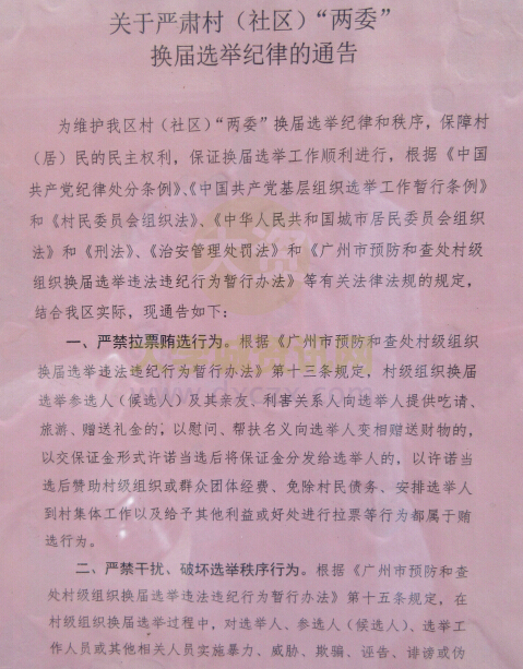 | 关于严肃村(社区)“两委”换届选举纪律的通知 | ||||||