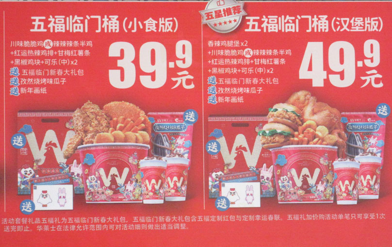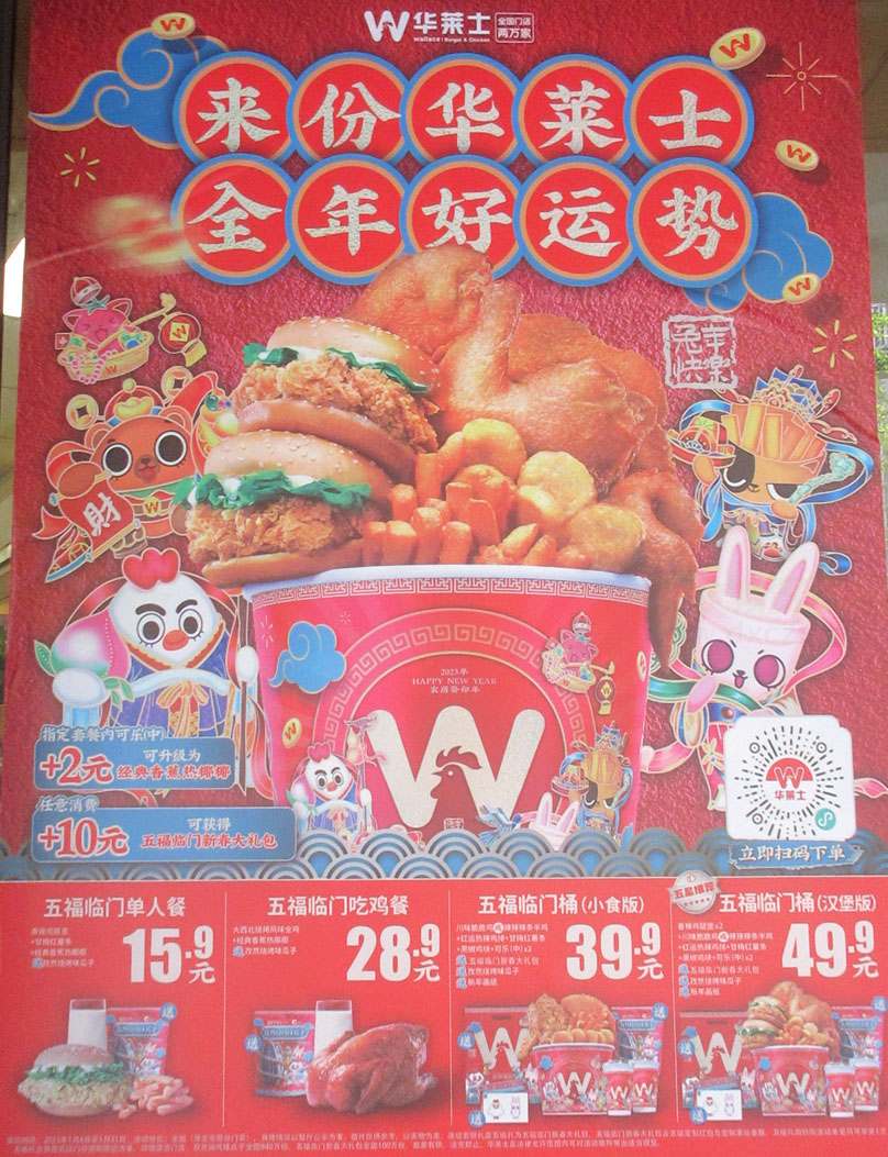 | 南亭-下朗街南端&南亭大道交汇 华莱士 春节过年期间都有开门营业喔 新春活动1月4日-1月31日,推出五福临门系列套餐 | ||||||