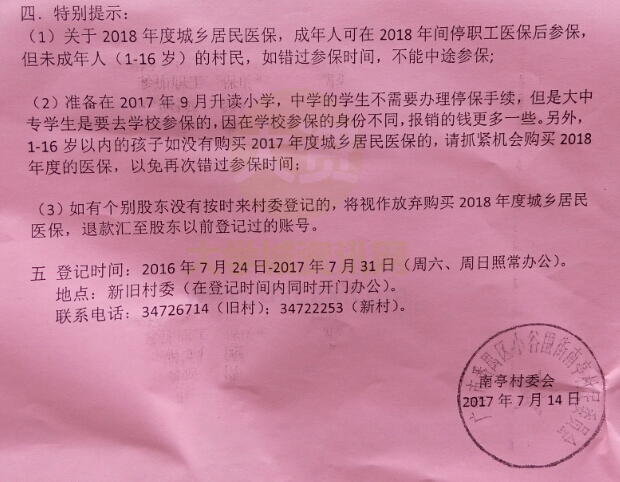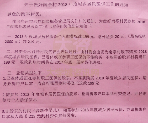 | 关于做好南亭村2018年度城乡居民医保工作的通知 | ||||||