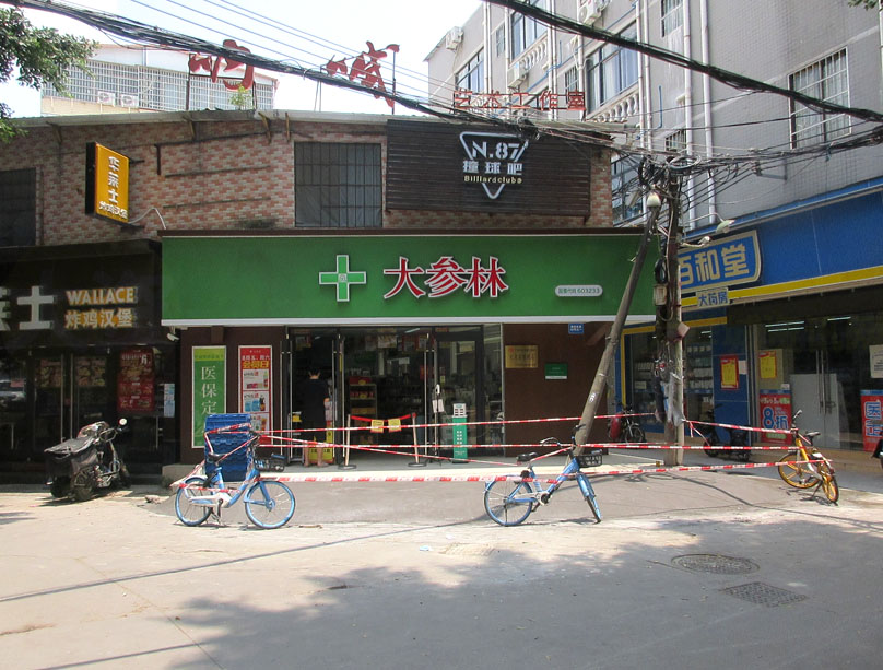 | 大参林药店门前新增砌水泥平缓斜面,与原地板瓷砖顺延出路面 | ||||||