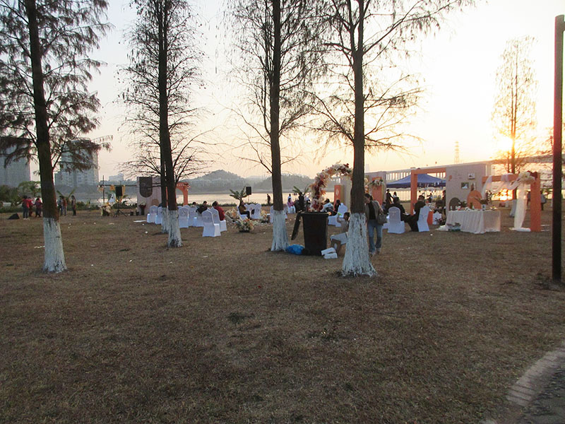 还专门在江岸边草坪设了个婚礼场景,这在以往还是比较少有的,现场气氛好像还不错,主要是,温度、夕阳都刚刚好