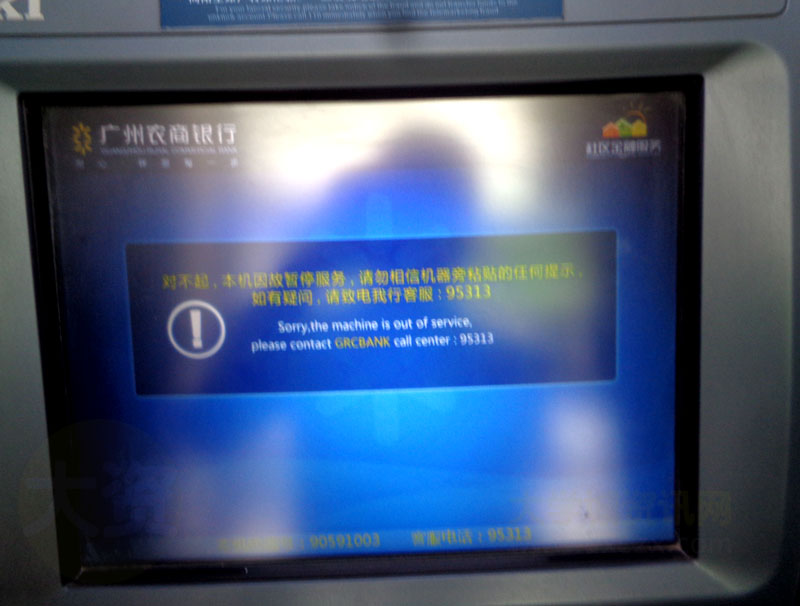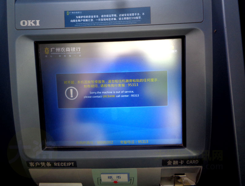 外置的两台ATM暂时提示不能使用,暂停服务