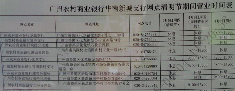 注意到,这个营业时间表上南亭网点地址仍旧是很久之前的桥头直街6号,其实这个是大学城开建之初以前的旧地址了,大学城建后,该农商行位置通过置换把原桥头直街6号农信社与南亭大道40号临街户主对换,所以最新正确地址应该描述为:南亭大道40号-1 |